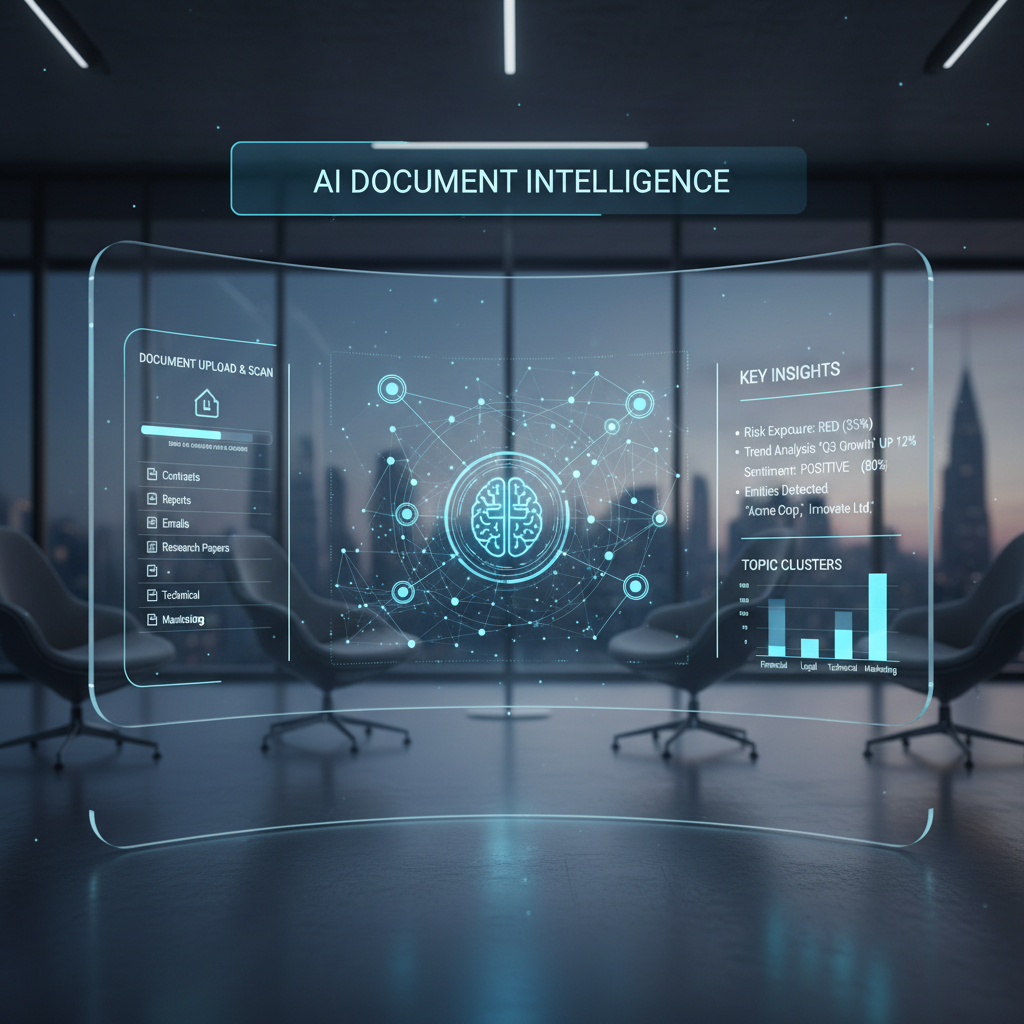 Alt text: Analyst using AI-powered document analysis dashboard, reviewing extracted insights from complex documents, keywords: AI document analysis, in-house, automation.
