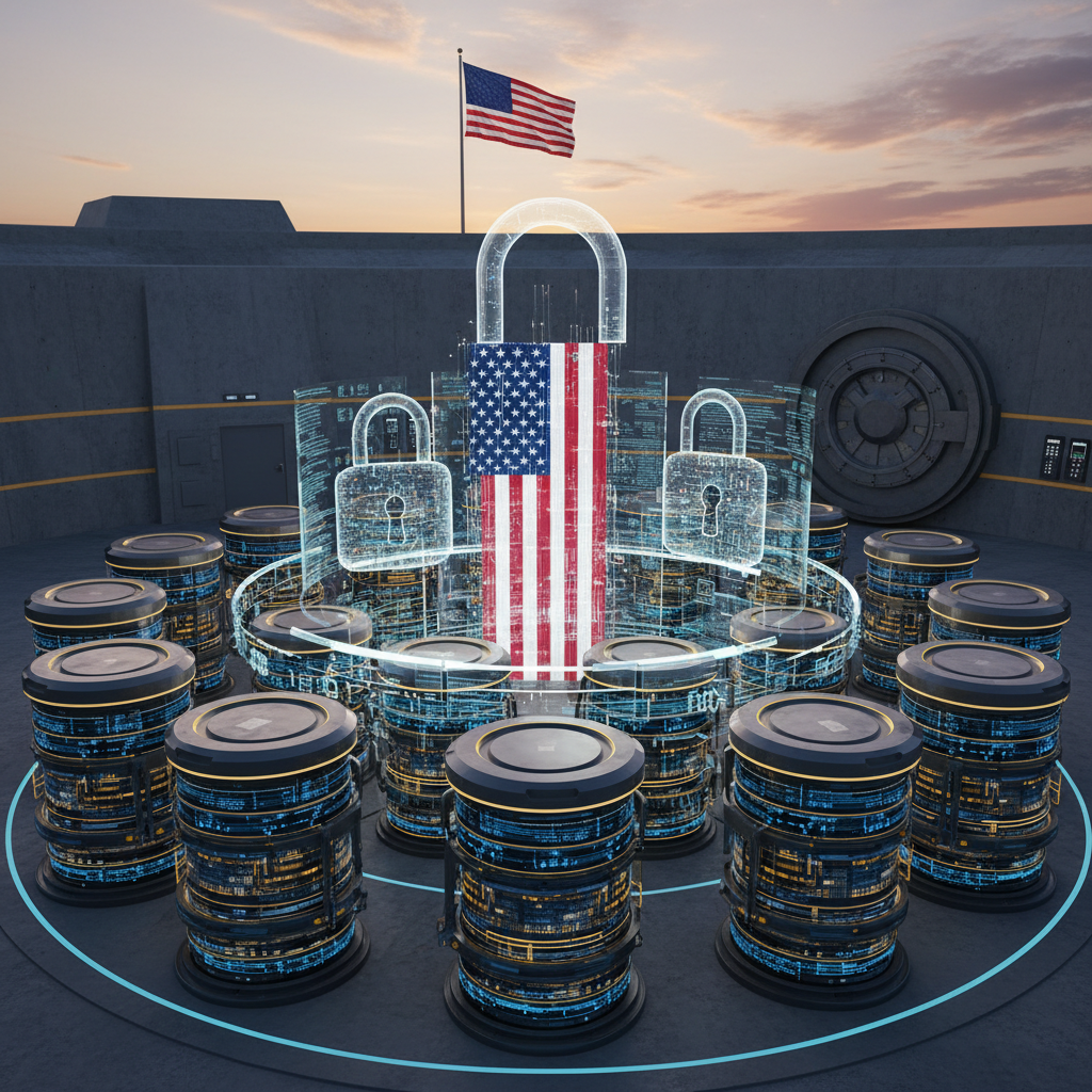 Alt text: Secure on-premises data storage with national flag and digital locks, illustrating data sovereignty for document analysis.