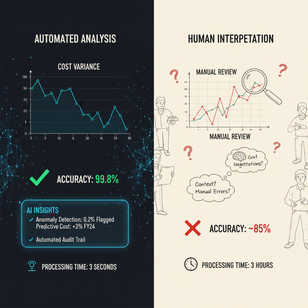 | Error Risk | Prone to bias, error spikes | Data-driven, consistent output |