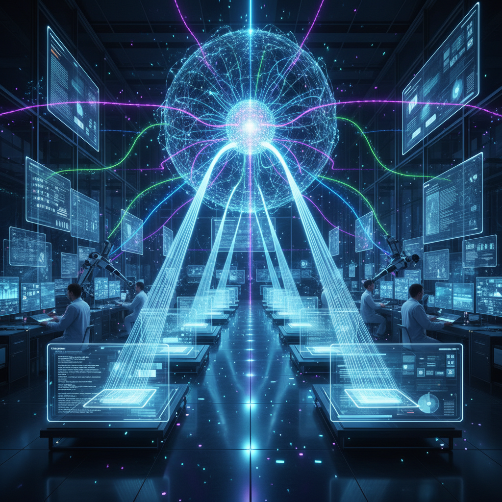 Alt: Visual metaphor of AI analyzing documents with neural networks, symbolizing advanced document analytics tools