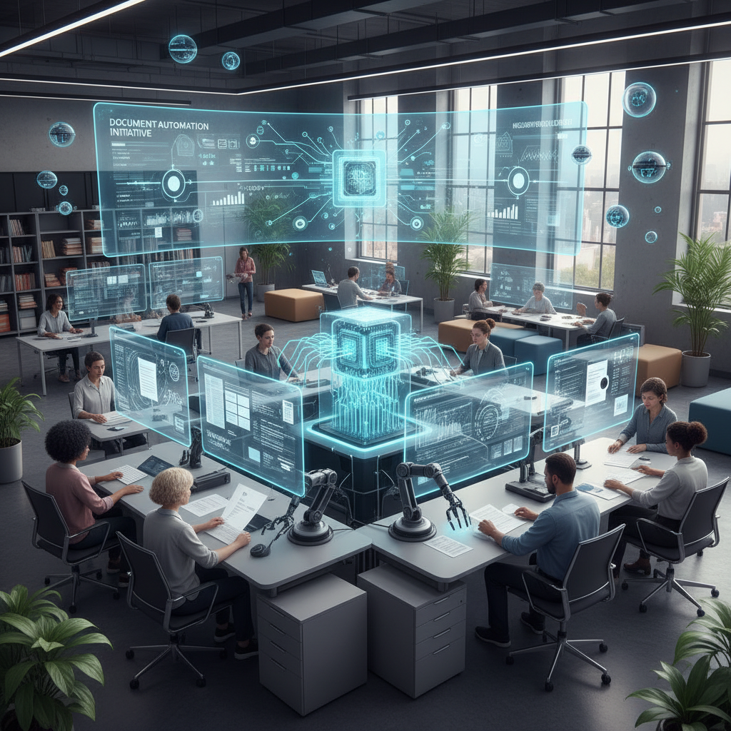 The use of software to generate, process, and manage documents automatically, reducing human intervention. Example: Auto-generating contracts based on templates and data inputs.