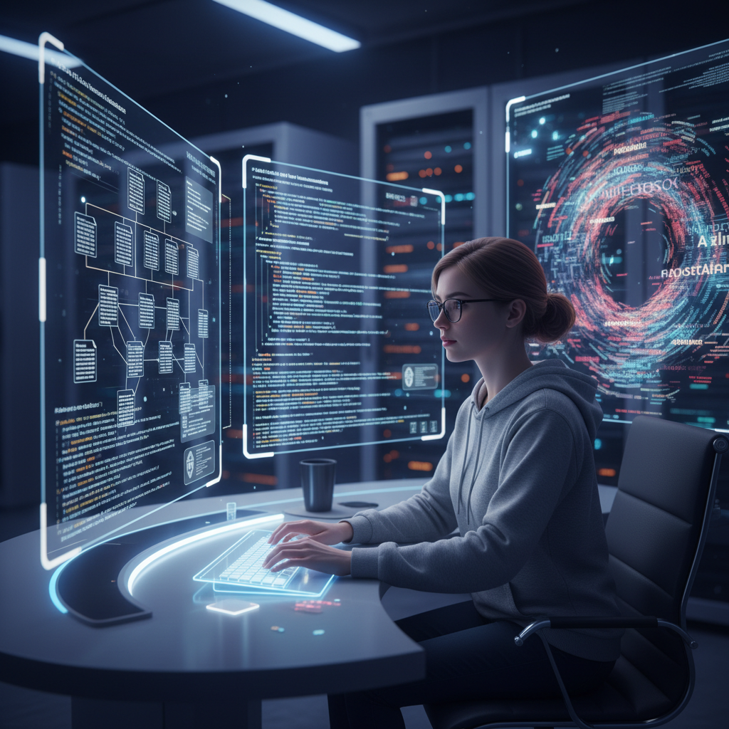 Photo: Digital abstraction of an AI model “reading” stacks of legal documents, highlighting the leap from rote automation to real understanding.