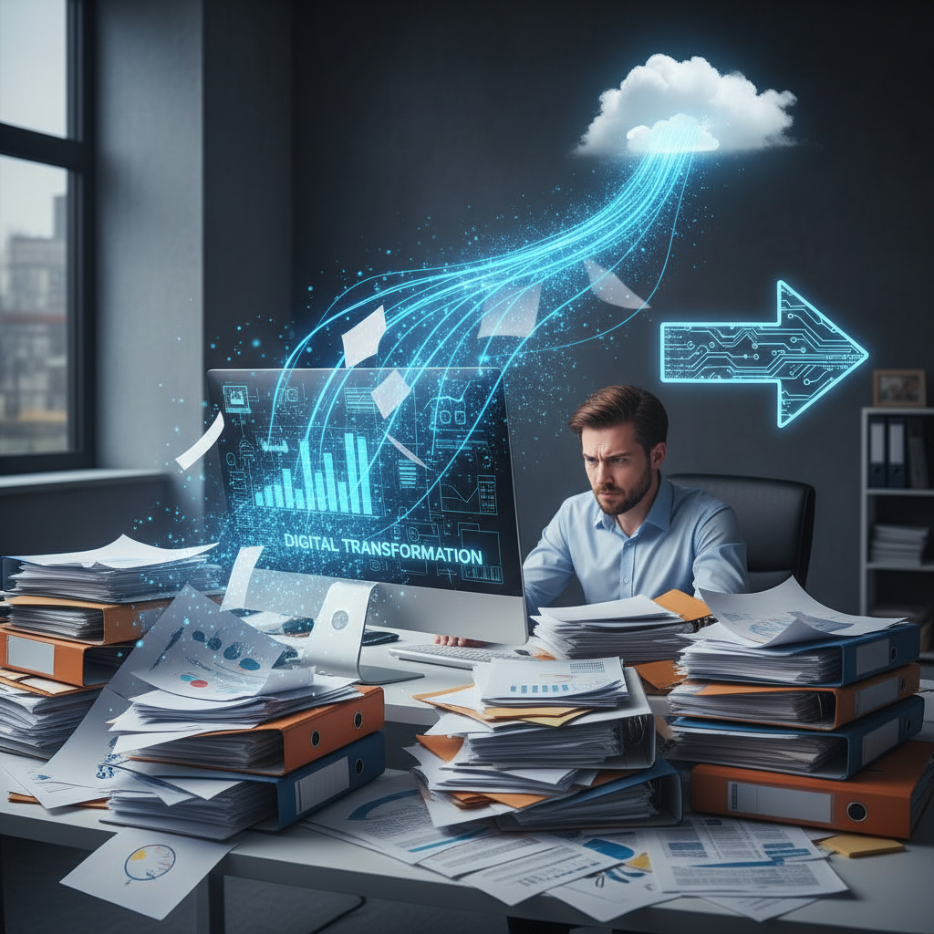 Photo: Technology bridging analog paper and digital intelligence, symbolizing the evolution of document data analytics.