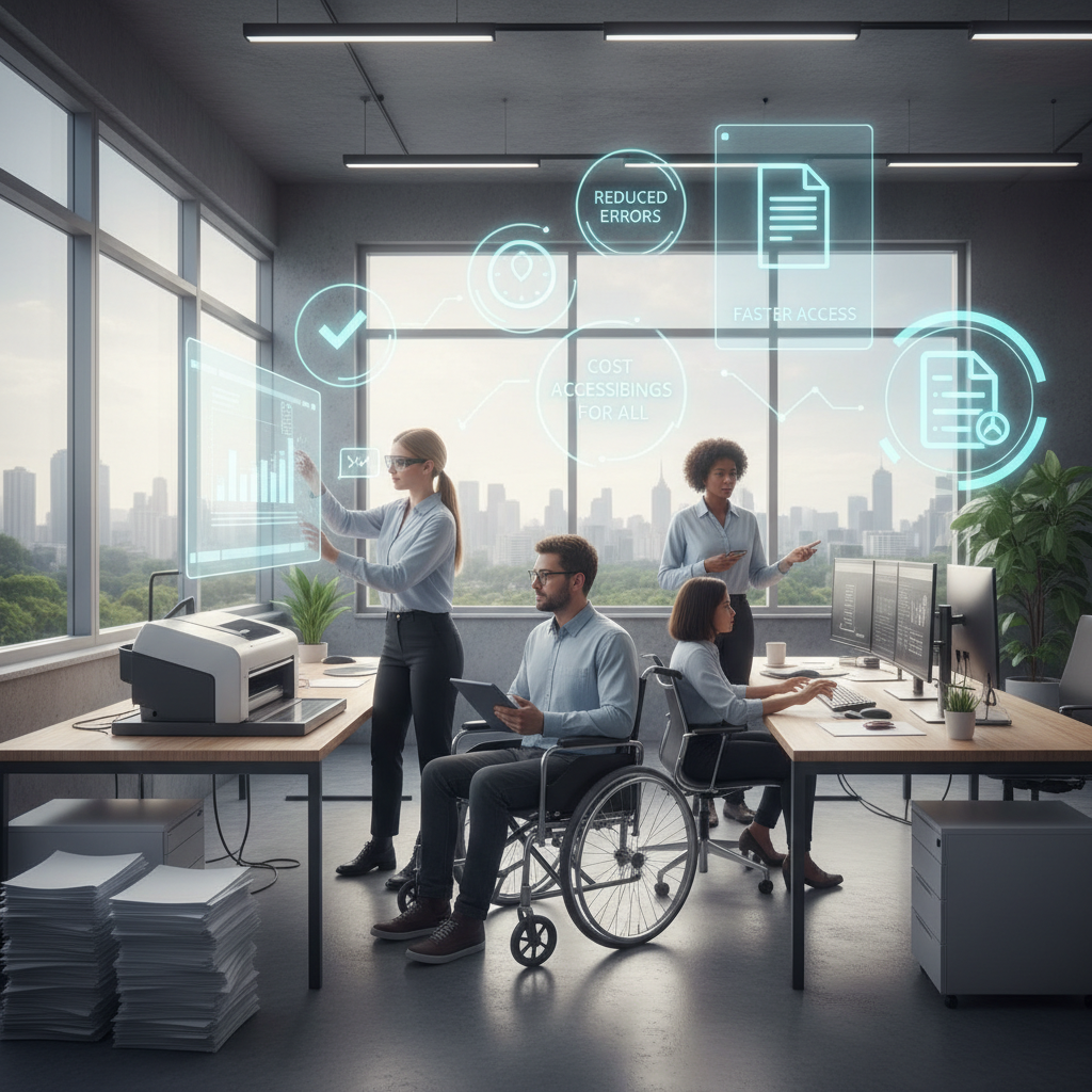 One of the most transformative document digitization advantages? Radical accessibility. Documents once shackled to a single office now become instantly available to remote workers, global teams, and those with disabilities. Marketingscoop (2024) highlights that digital formats empower visually impaired users through screen readers and offer real-time translation for multicultural workforces.