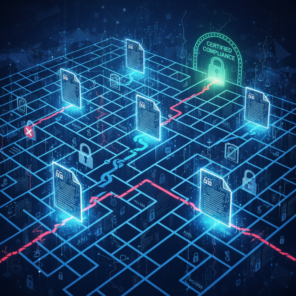 Digital documents tangled in a compliance maze: without a bulletproof workflow, every file is a legal liability.