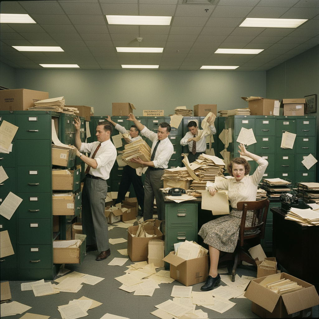 Before the digital age, knowledge management was a literal paper chase. Filing cabinets stuffed with contracts, memos, and technical manuals lined the walls of every office. The inefficiency was staggering. Locating a single document could take hours, if not days, and accidental misfiling often meant permanent loss. The only indexing: a yellowing folder tab or a harried admin’s memory.