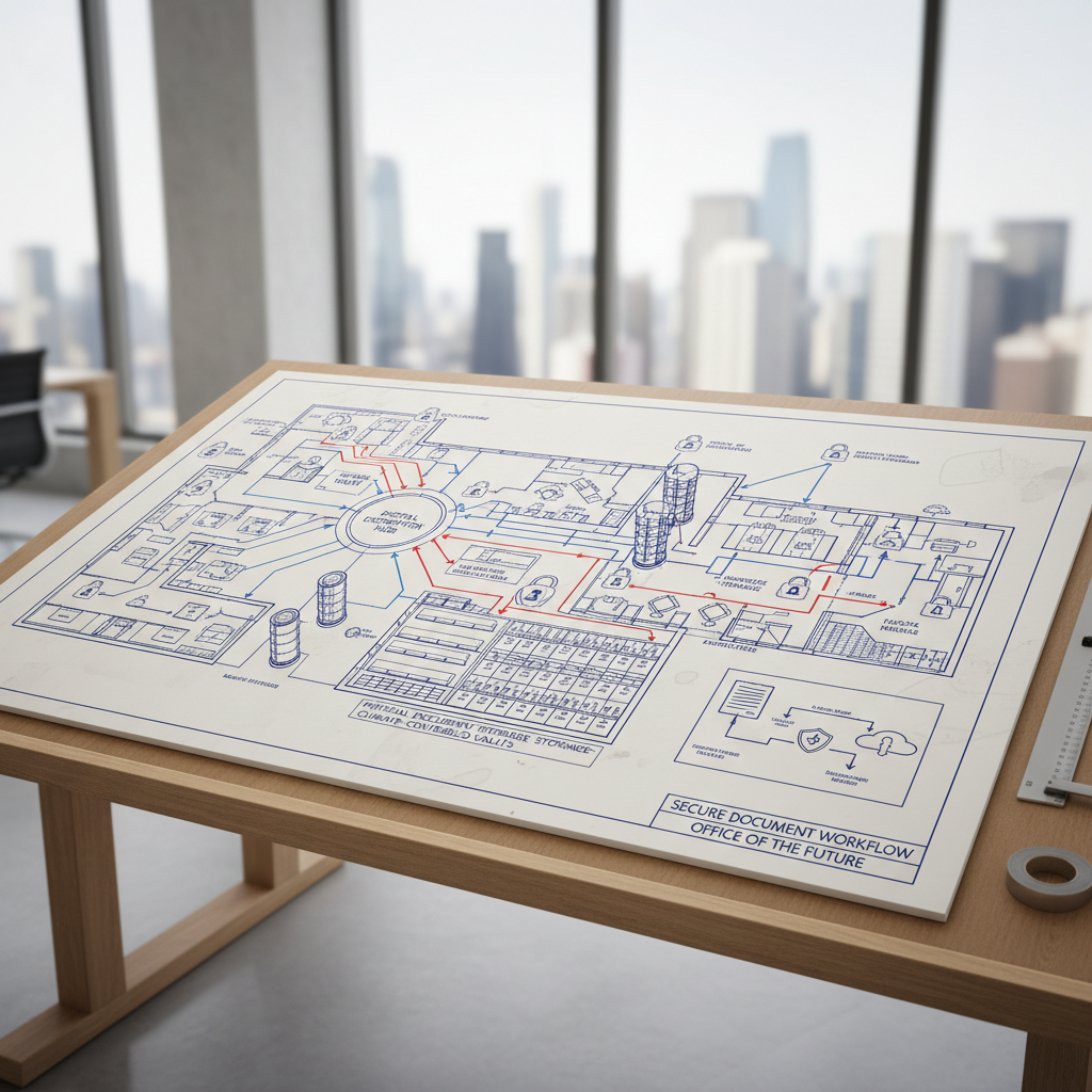 Alt text: Blueprint of a secure document management strategy, visualizing resilient document storage solutions.