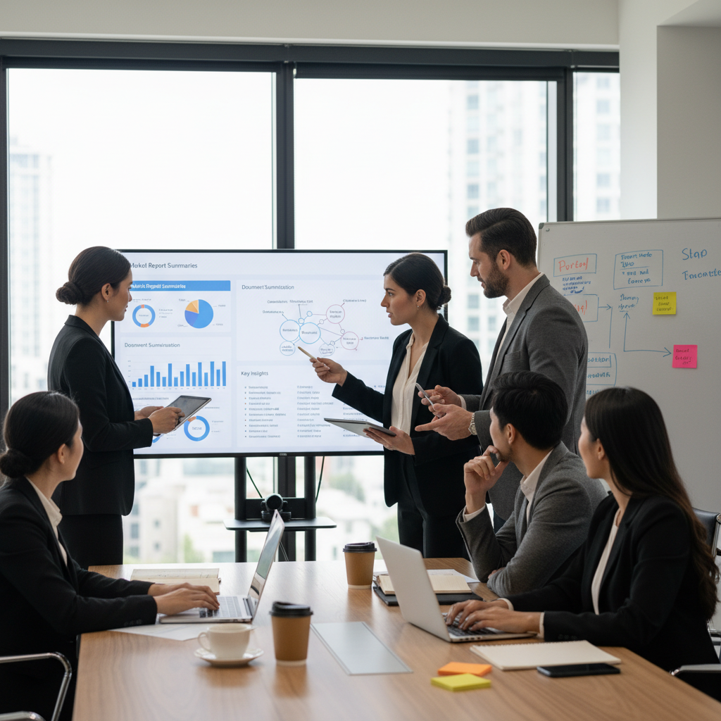 - Real-time summarization: Instantly distills reports, contracts, and research papers into actionable insights.