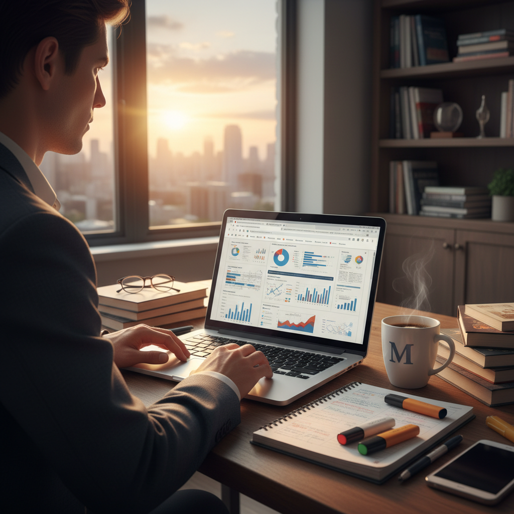 Alt text: Risk assessment professional researching document summarization resources online