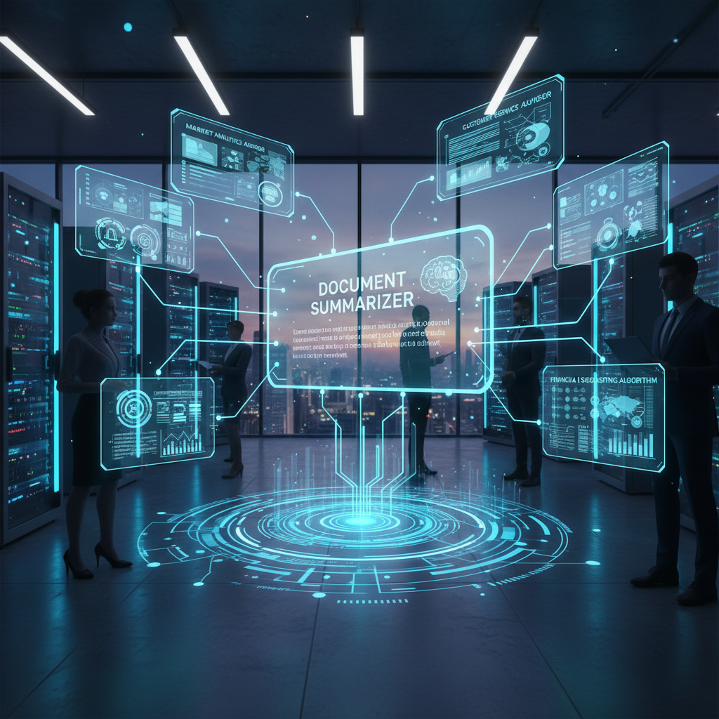 Alt text: Diagram of advanced business tools ecosystem with document summarizer as core highlighted
