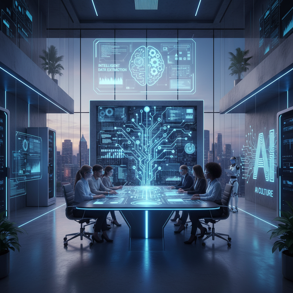 Image: Employees and AI assistants collaborate in a modern office, illustrating the cultural impact of intelligent data extraction.