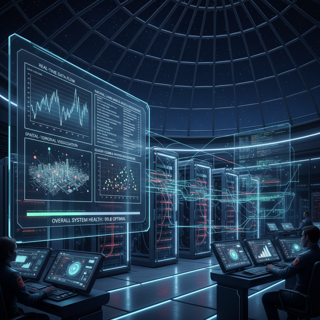 Modern data center integrating voice, text, and sensor streams into an advanced analytics dashboard for richer forecasting.