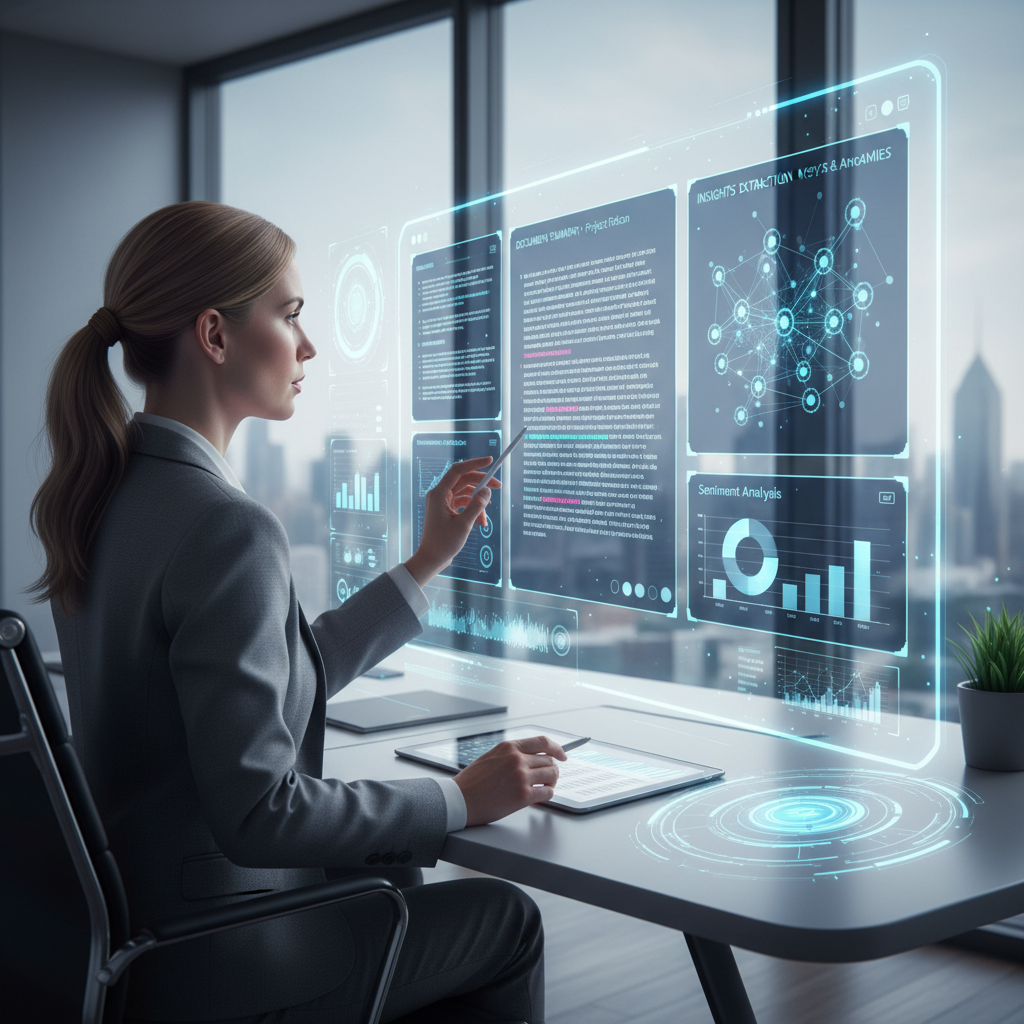 - Summarization engines distill hundreds of pages into executive-ready briefs.