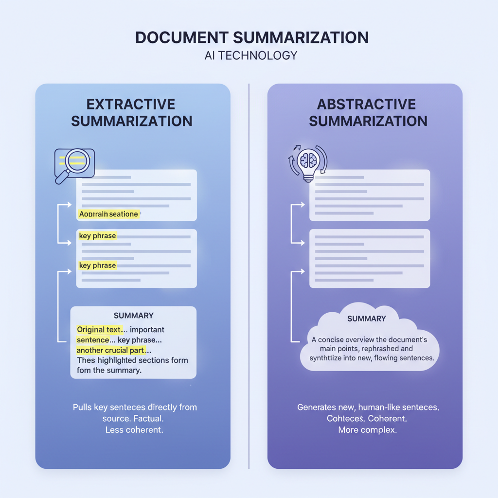 At the core of summarization technology are two approaches—extractive and abstractive—each with distinct strengths and tradeoffs.